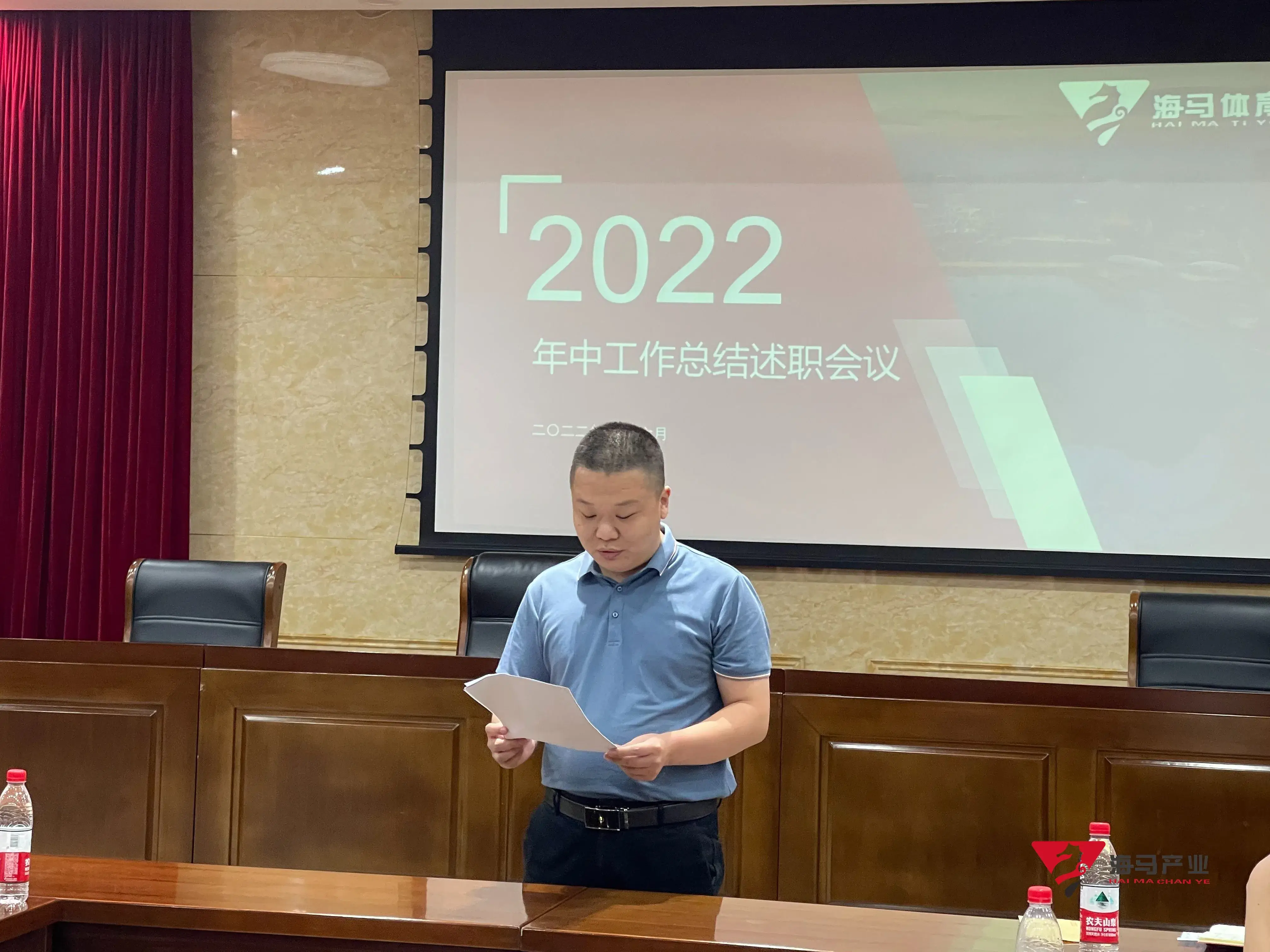 2022年6月29日下午,非凡体育文化产业集团在山东省体育中心二楼会议室召开年中工作总结述职会议,会议对上半年工作成果进行了总结汇报,并就下半年重点工作进行部署。总经理王海民出席了本次会议。会议由综合管理部负责人王永健主持。